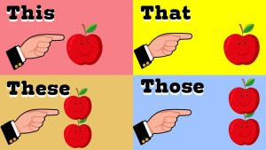 We say ‘this’ and ‘these’ to talk about a thing or some things which are near to us. We say ‘that’ and ‘those’ to talk about a thing or some things which are not very near.