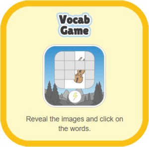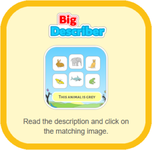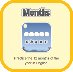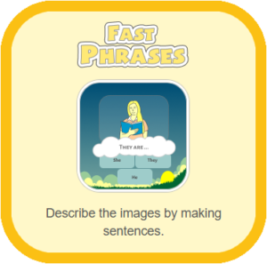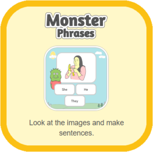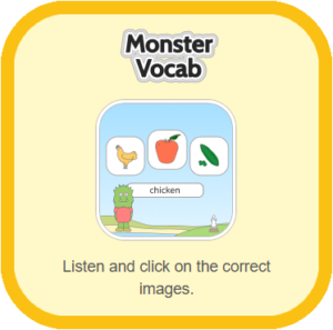 AllVocabularyGrammarSpecific Language AreasThematic VocabularySentence ConstructionFast VocabularyFast EnglishConcentrationVocabularyBig DescriberSpelling BeeHangmanWord SearchMonster VocabularyRevealPresent SimplePast TenseFuture TensePerfect TenseQuestionsPrepositionsComparativesConditional SentencesPhrasal VerbsGrammar BubblesBody PartsDays of the WeekMonthsTimeJobsFoodClothesWeatherFamily MembersMonster NumbersMonster PhrasesFast PhrasesAnimal MysteryFalling CloudsDaily Routines